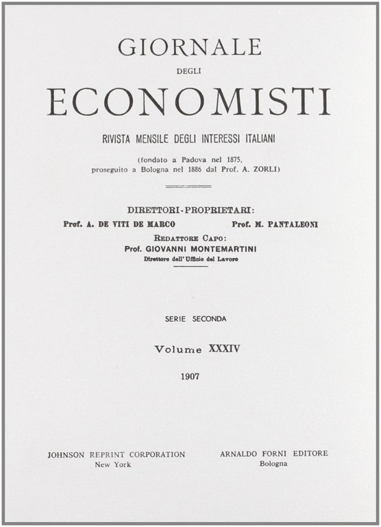 Giornale degli Economisti. 2" serie. Vol. 34