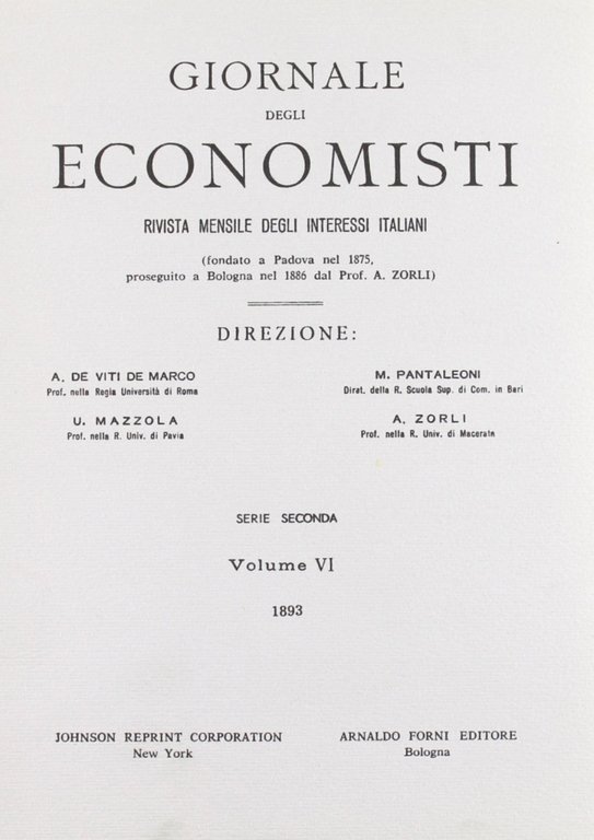 Giornale degli Economisti. 2" serie. Vol. 6