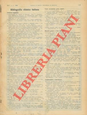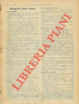 Milano, 1932, A. XIV n. 1/12, 4to rilegato in mezza tela d'epoca, con annunci pubblicitari. Raccolta delle sole parti relative a "Bibliografia Chimica Italiana", "Rivista delle riviste estere", "Brevetti italiani"