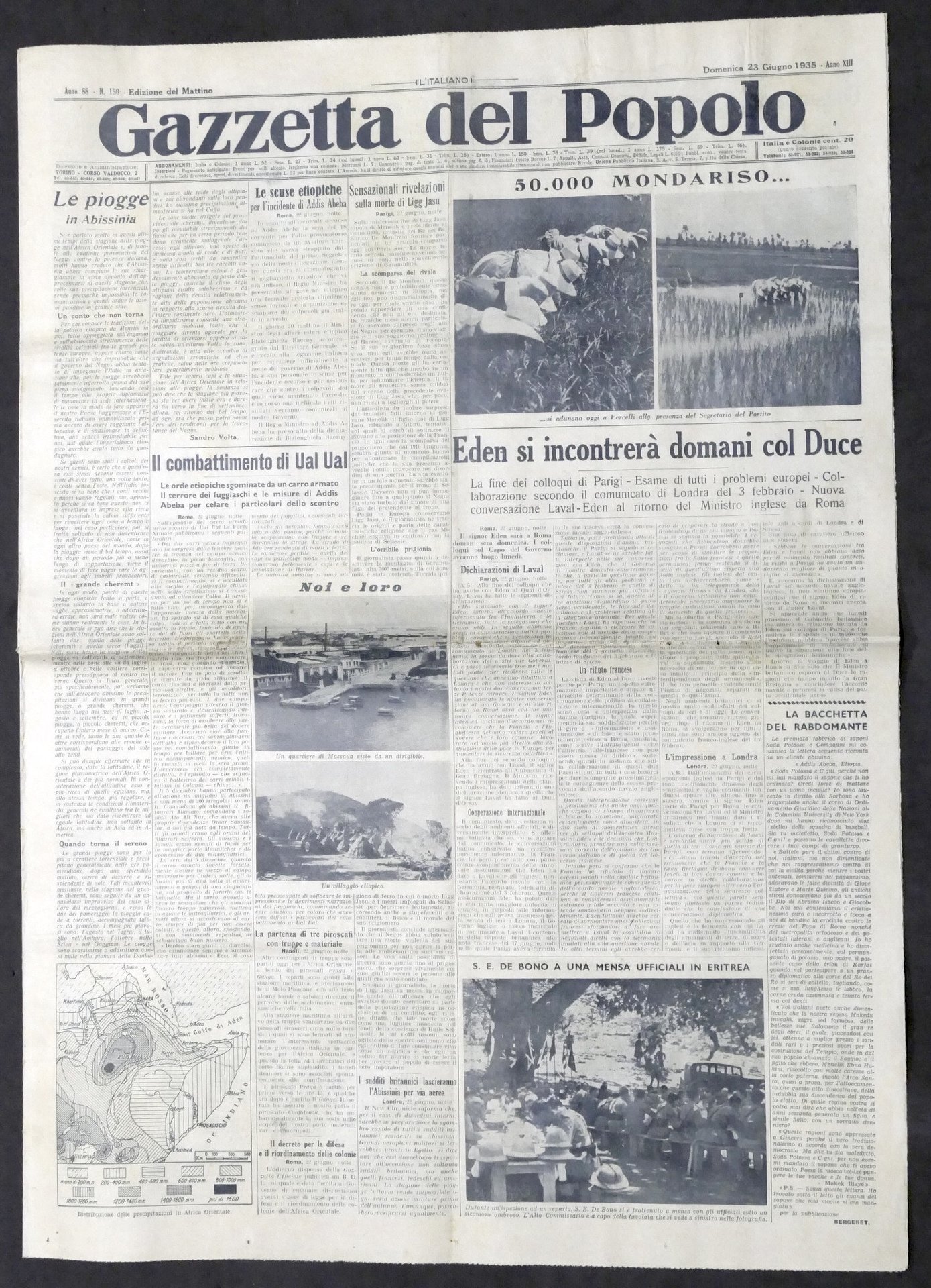 Giornale Gazzetta del Popolo N. 150 - Eden si incontrerà con Duce - 1935 Testo in lingua italiana, Pag. 8 con illustrazioni Condizioni buone