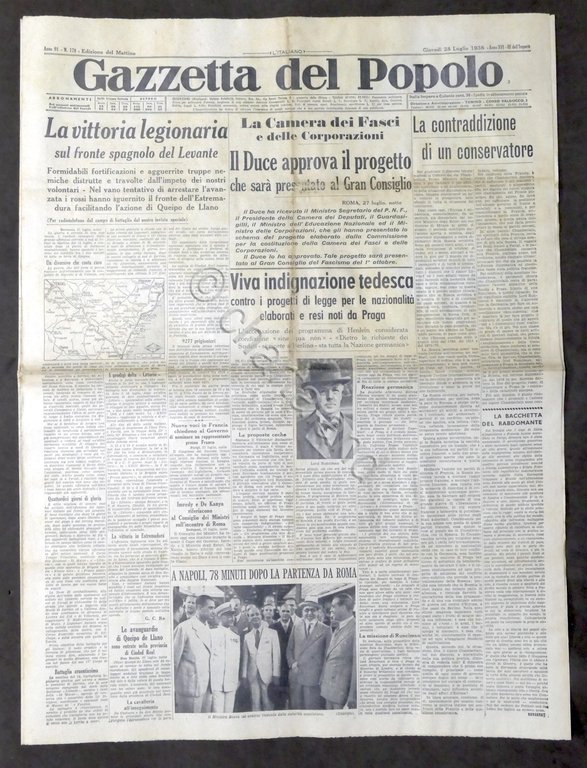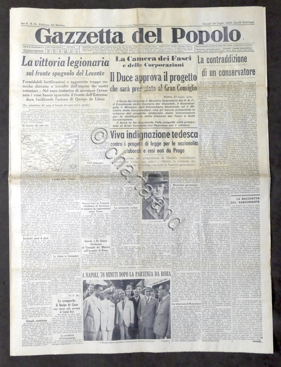 Giornale Gazzetta del Popolo N. 178 Vittoria legionaria sul fronte spagnolo 1938