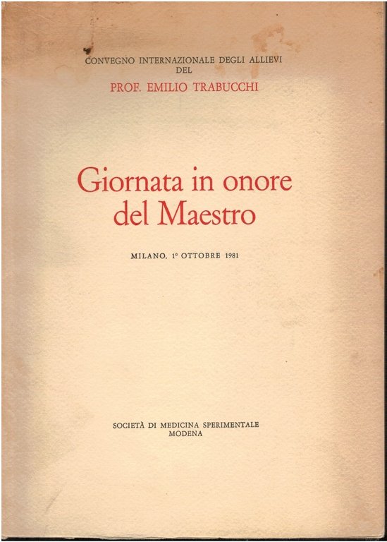 Giornata in onore del maestro. Convegno internazionale degli allievi del Prof. Emilio Trabucchi