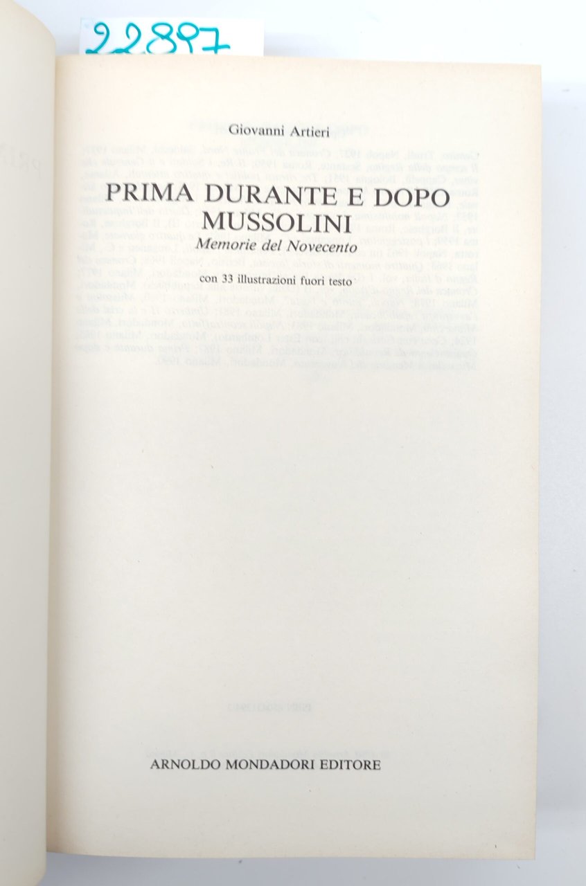 Giovanni Altieri Prima durante e dopo Mussolini Le Scie Mondadori 1° ed. 1990 | Rare and modern books | Giovanni Altieri