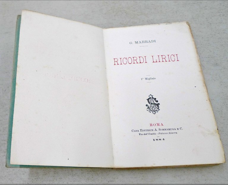 Giovanni Marradi,RICORDI LIRICI,1884 Sommaruga[poesia