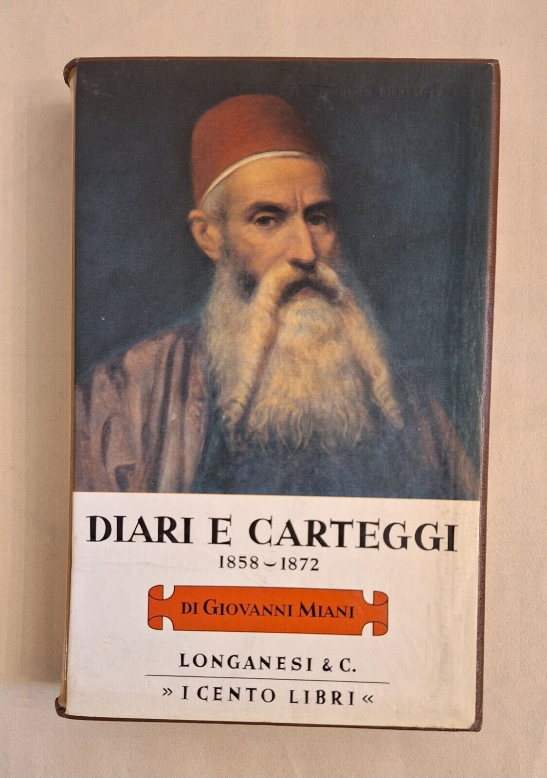 GIOVANNI MIANI DIARI E CARTEGGI 1858-1872 LONGANESI I CENTO LIBRI 1973In 8°, legatura editoriale in mezza pelle con tassello e fregi in oro al dorso, sovracopertina in acetato trasparente, custodia illustrata.In ottime condizioni.