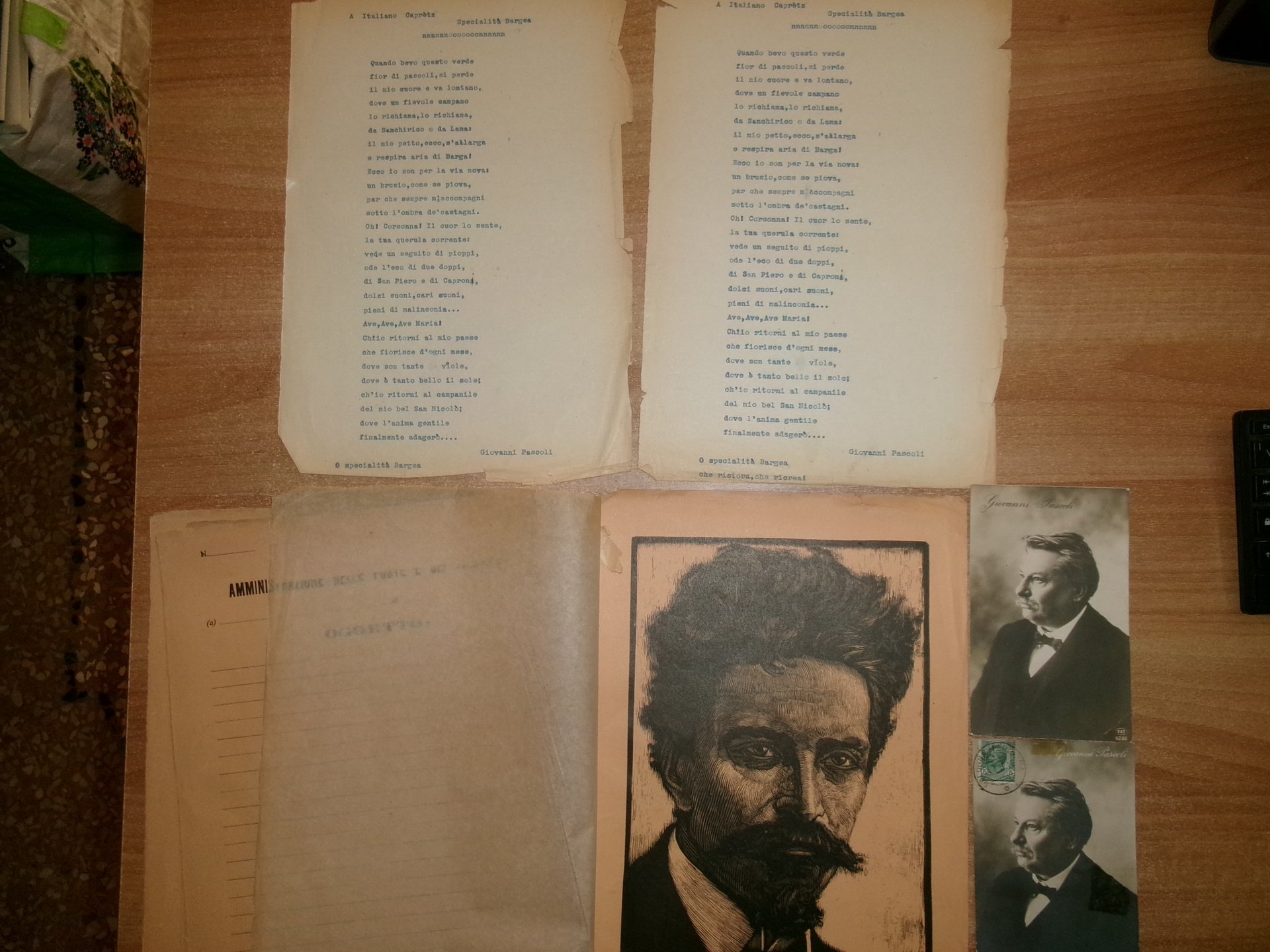 GIOVANNI PASCOLI. Cimeli Pascoliani...