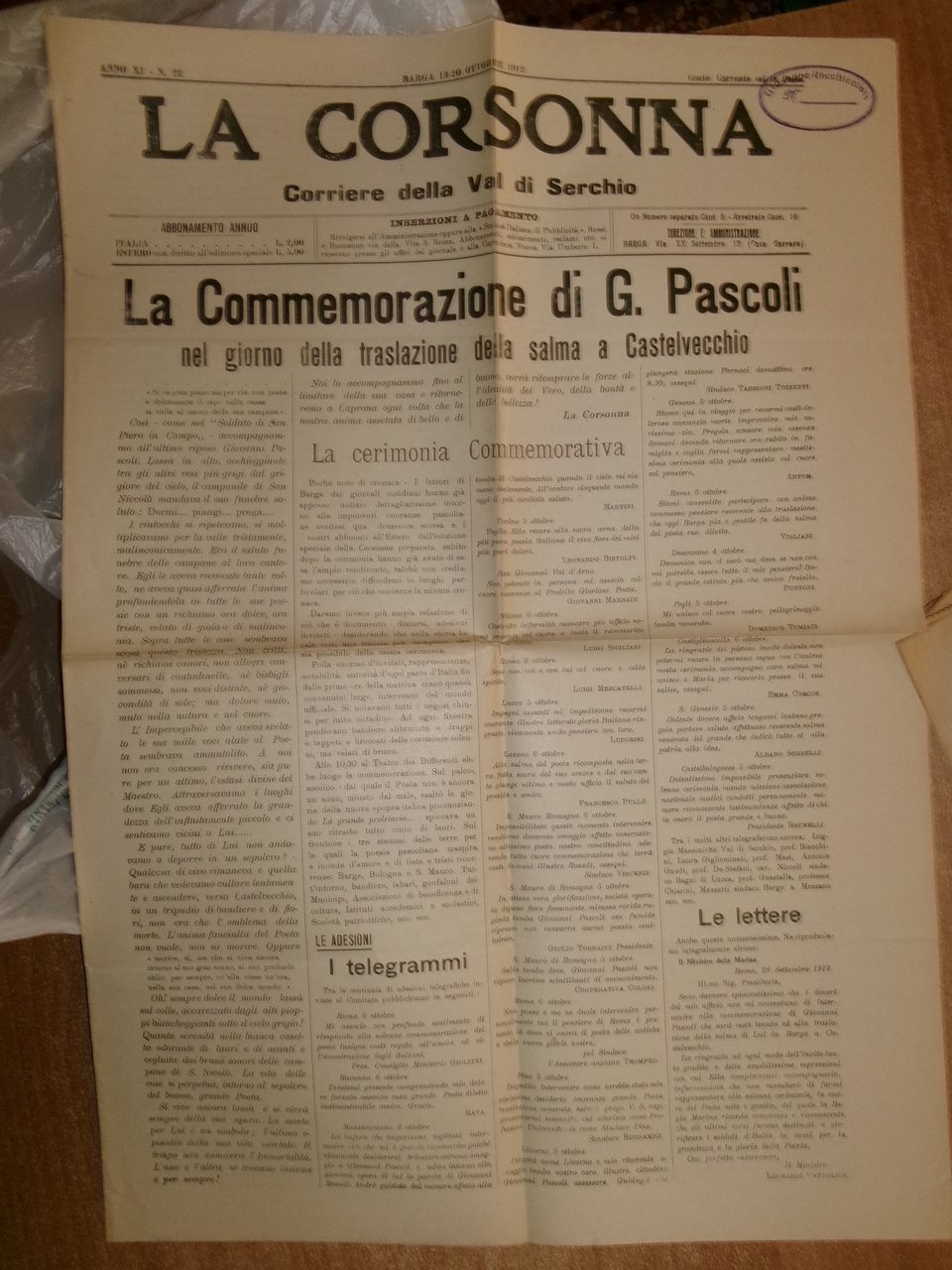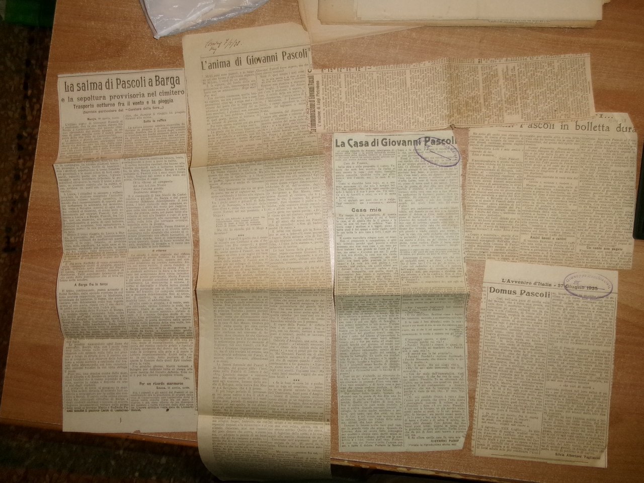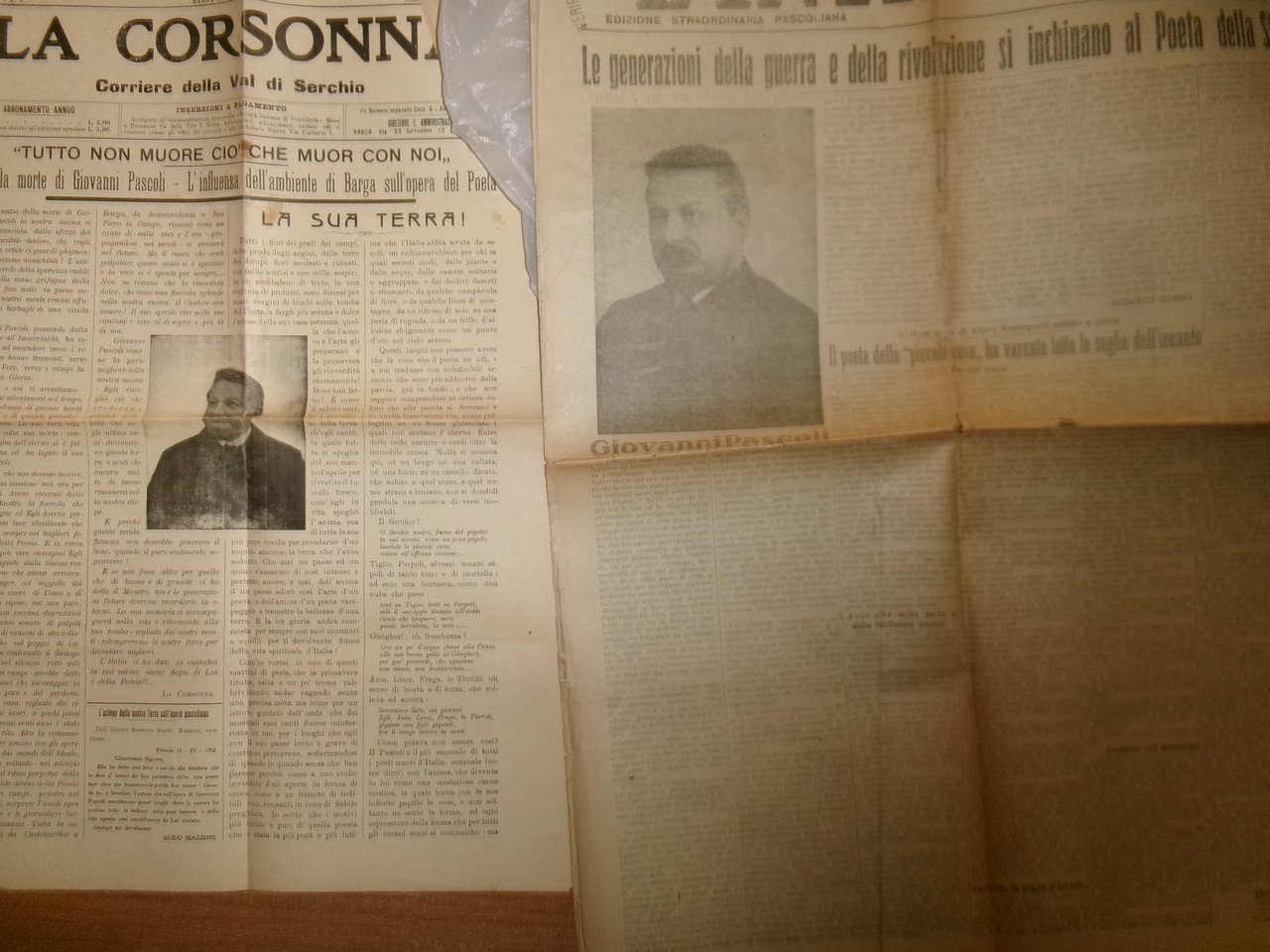 GIOVANNI PASCOLI. Cimeli Pascoliani... Materiale d' epoca: Ritagli di giornale, fotografie/cartoline, giornali e riviste inerenti al grande Poeta. Per maggiori informazioni contattare la libreria. Uff. pacchi lettere