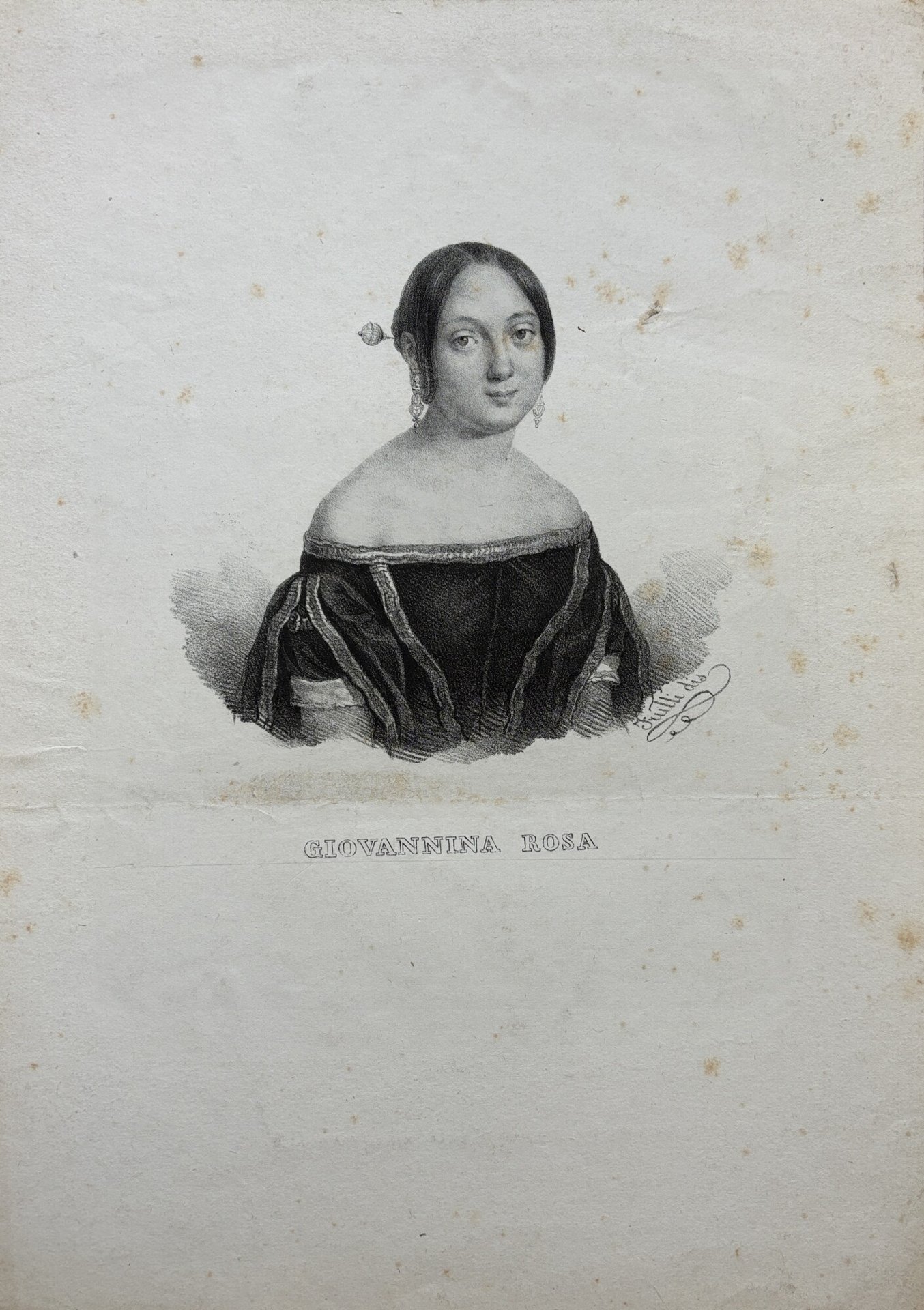 Incisione su disegno di Achille Frulli. litografia foglio cm. 25 x 34,5 Buono (Good) Buon es. con qualche macchia nel foglio e nell'inciso.