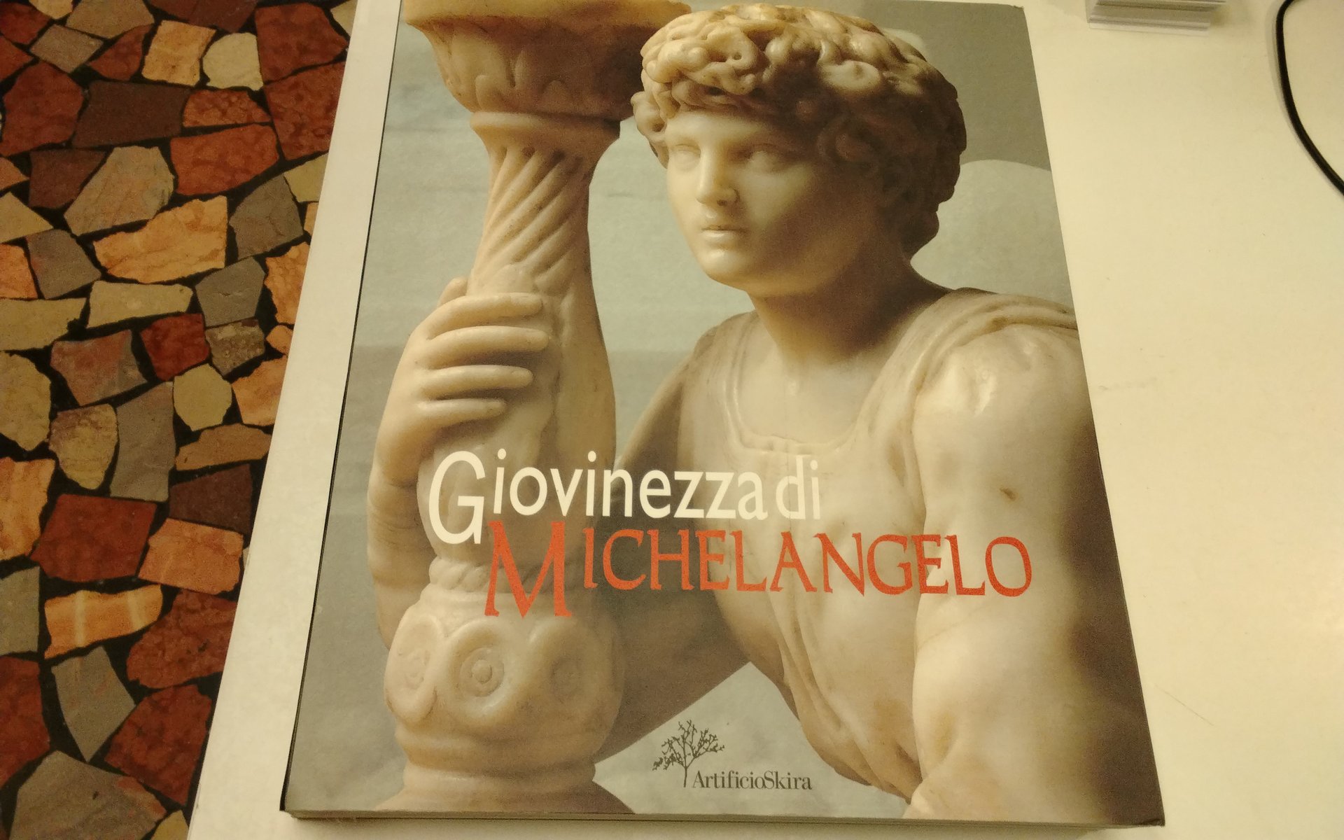 Catalogo della mostra tenuta a Firenze nel 2000, dedicata allo opere giovanili di Michelangelo Buonarroti, celebre scultore, pittore, architetto e poeta italiano del '500.