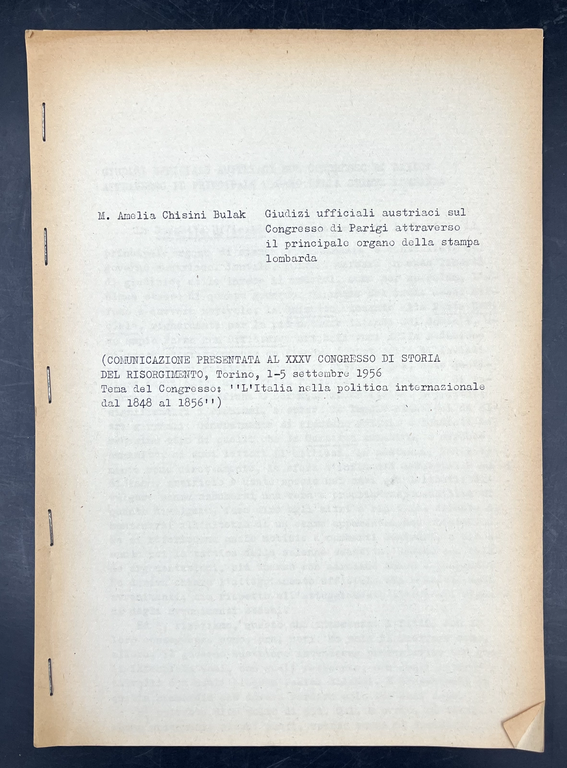 GIUDIZI UFFICIALI AUSTRIACI sul CONGRESSO di PARIGI attraverso il principale organo della STAMPA LOMBARDA. Pubblicato in: Atti del XXXV Congresso di Storia del Risorgimento su "L'Italia nella politica internazionale dal 1848 al 1856", Torino 1-5 settembre 1956