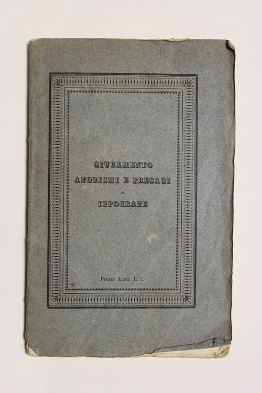 Giuramento aforismi e presagi di Ippocrate. Traduzione italiana con note di Dionigi Martinati vicentino