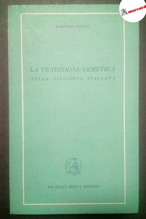 Giusso Lorenzo, La tradizione ermetica. Nella filosofia italiana., Bocca, 1955.