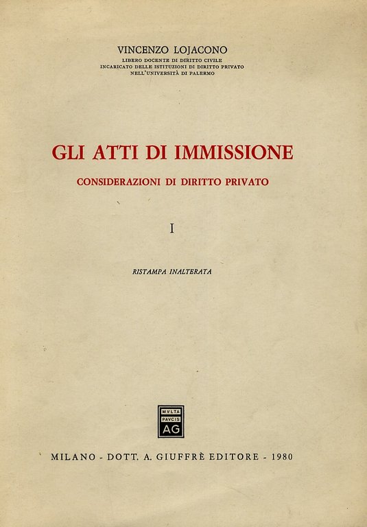 Gli atti di immissione. Considerazioni di diritto privato. I: unico.