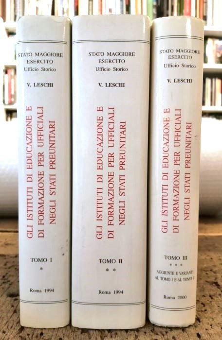 Gli istituti di educazione e di formazione per ufficiali negli Stati preunitari: 3 VOLUMI. | Rare and modern books | Leschi, Vittorio.