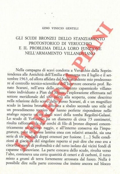 Gli scudi bronzei dello stanziamento protostorico di Verucchio e il problema della loro funzione nell'armamento villnoviano.