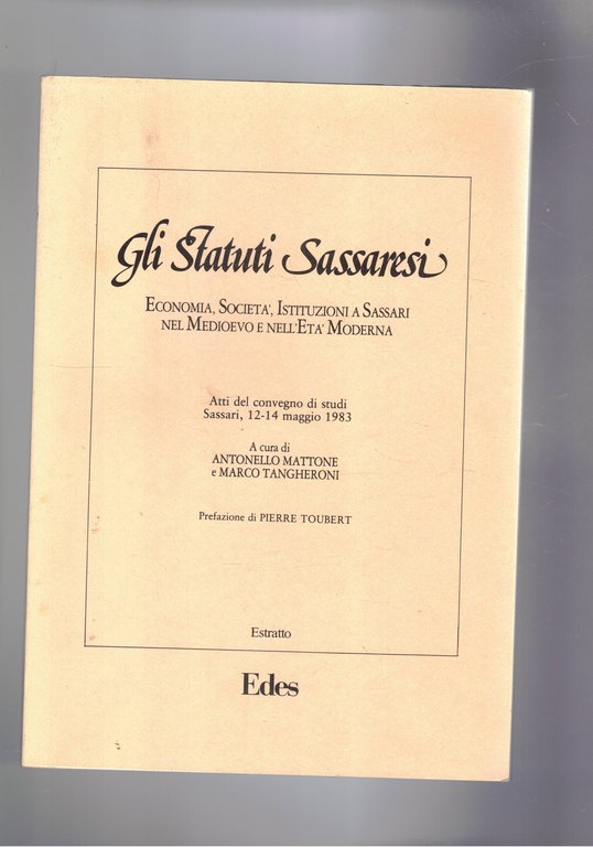 Gli statuti Sassaresinel periodo aragonese e spagnolo. Estratto dagli atti del convegno di studi del maggio 1983.