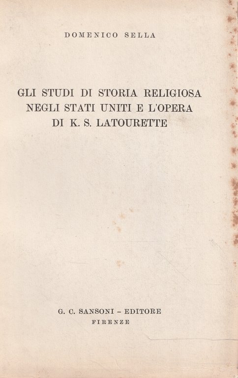 Gli studi di storia religiosa negli Stati Uniti e l'opera di K.S. Latourette