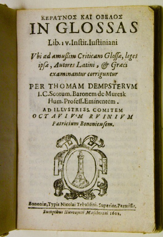 (graece) Keraunos kai obelos in glossas Lib. IV Instit. Iustiniani ubi ad amussim Criticam Glossae, leges ipsae, Autores Latini, & Graeci examinantur corriguntur.