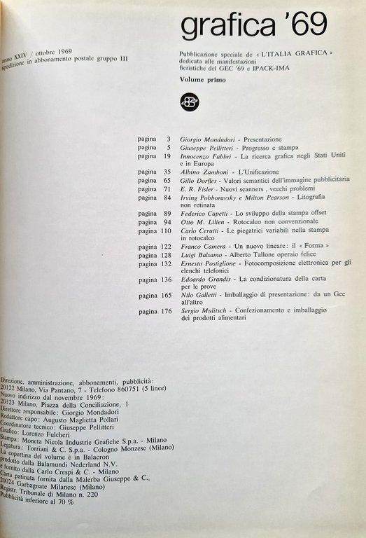 GRAFICA '69. Pubblicazione speciale de "L'Italia Grafica" dedicate alle manifestazioni fieristiche del GEC '69 e IPACK-IMA.