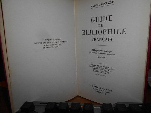 MARCEL CLOUZOT. Paris, Librairie Clouzot, 1953. GUIDE du BIBLIOPHILE Français 1800-1880. In-8°, tela bordeaux con titoli sul piano e al dorso. 163 pp. Ottimo esemplare. Neg. mob. rosso