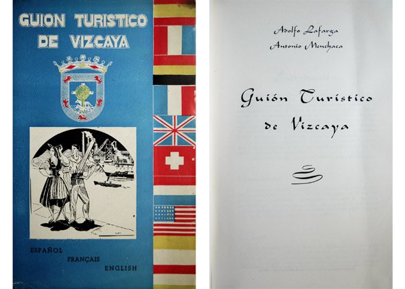 Bilbao, Escuela Gráfica Misericordia, s.a. (hacia 1960). 4to.; 131 pp. Con 3 láminas de itinerarios por Vizcaya y dos planos plegados. Ejemplar con envío autógrafo de Adolfo Lafarga Cubiertas originales.