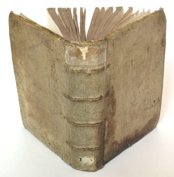 4to. (2), 13, (1) pp. With woodcut title vignette. - (Bound after) II: Valentia, Gregor de, SJ. (praes.) / Hendschele, Tobias (resp.). Disputatio theologica de theologiae necessitate et ratione [.]. Ingolstadt, David Sartorius, 1589. (6), 8 pp., l. bl. f. - (Bound after) III: Rabe, [Johann] Jakob. In formulam concordiae Iacobi Andreae Schidelini [.] quam Sturmius impugnat, [anonymos]. Ingolstadt, Weissenhorn/Wolfgang Eder, 1580. 18 unn. ff. (last bl.). With woodcut title border. - (Bound after) IV: Thyraeus, Petrus, SJ. (praes.) / Bickel, Philipp (resp.). Examen apologeticarum thesium Danielis Tossani [.]. Mainz, Caspar Behem, 1588. 50 unn. ff. With woodcut title border. - (Bound after) V: Pistorius von Nidda, Johann. Epistolae duae [.] ad Ioannem Pappum, Lutheranae theologiae doctorem [.]. Freiburg, Abraham Gemperlin, 1592. 111, (1) pp. - (Bound after) VI: Hänlin, Georg. Parallela confessionis augustinianae, et augustanae. Opposita parallelis Ioannis cuiusdam Pappi [.] Cum epistolis duabus ad eundem Pappum, scripis à Ioanne Pistorio Nidano. Freiburg, Abraham Gemperlin, 1592. (20), 122, (2) pp. - (Bound after) VII: Stevart Leodius, Pierre (praes.) / Aedilis, Georg (resp.). Brevis explicatio, octo priorum capitum epistolae D. Pauli ad Romanos [.]. Ingolstadt, David Sartorius, 1586. (4), 42, (2) pp. - (Bound after) VIII: Stevart Leodius, Pierre (praes.) / Rotbaur, Johann (resp.). Prioris epistolae D. Pauli ad Timotheum pars posterior, id est Tria posteriora capita [.]. Ingolstadt, Wolfgang Eder, 1587. (4), 35, (1) pp. With large woodcut on reverse of t.p. - (Bound after) IX: Stevart Leodius, Pierre (praes.) / Kepser, Wilhelm Sixtus (resp.). Epistolae D. Pauli ad Galatas expositio [.]. Ingolstadt, Wolfgang Eder, 1592. (4), 13 pp., 14-39, (1) ff. With woodcut printer's device on t.p. - (Bound after) X: Stevart Leodius, Pierre (praes.) / Schmidtner, Michael (resp.). Epistolae divi Pauli ad Hebraeos, septem priorum capitum brevis explicatio [.]. Ingolstadt, David Sartorius, 1588. (4), 47, (1) pp. - (Bound after) XI: Stevart Leodius, Pierre (praes.) / Winzet of Glasgow, John (resp.). In canonicam D. Jacobi epistolam brevis commentarius [.]. Ingolstadt, David Sartorius, 1591. (4), 50, (2) pp. With woodcut title border. - (Bound after) XII: Stevart Leodius, Pierre (praes.) / Melemius, Andreas (resp.). Exegesis in epistolam D. Pauli ad Ephesios ecclesiae [.]. Ingolstadt, David Sartorius, 1593. (4), 83, (1) pp. Contemporary blindstamped pigskin on 4 double bands. Wants ties. All edges loosely sprinkled in red. Fine sammelband, uniting twelve counter-reformatory pamphlets. Apart from the very rare first separate publication of the letter by Duke George of Saxony to Luther (previously printed only in collected editions), the volume contains eleven anti-Lutheran polemics, some printed as disputations or dissertations. The somewhat dusty binding shows roll-tools of the Saints Peter, Paul, and John. - Well-preserved collection of Catholic polemical writing in a contemporary blindstamped binding. - I: Not in VD 16, Adams, BM-STC German. - II: VD 16, V 83. Stalla 1616. Not in de Backer/Sommervogel, Adams, BM-STC German. - III: VD 16, R 4. Stalla 840. Not in Adams or BM-STC German. - IV: VD 16, T 1244. Adams T 699. De Backer/Sommervogel VIII, 13, 9. Not in BM-STC German. - V: Adams P 1317. Not in BM-STC German or VD 16. - VI: VD 16, H 131 and P 3041. Adams H 4. Not in BM-German. - VII: VD 16, S 8953. Stalla 1564. Not in Adams or BM-STC German. - VIII: VD 16, S 8967. Stalla 1013. Not in Adams or BM-STC German. - IX: VD 16, S 8956. Stalla 1132. Not in Adams or BM-STC German. - X: VD 16, S 8957. Stalla 1607. Not in Adams or BM-STC German. - XI: VD 16, S 8961. Stalla 1693. Not in Adams or BM-STC German. - XII: VD 16, S 8959. Stalla 1739. Not in Adams or BM-STC German.