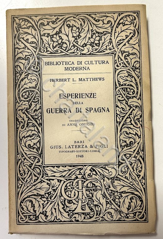 H. L. Matthews - Esperienze della guerra di Spagna - 1^ ed. 1948 pp. 175&nbsp,