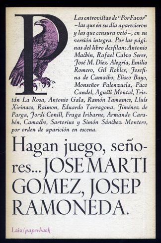 Hagan juego, señores. [Entrevistas de "Por Favor" a Rafael Calvo Serer, Antonio Gala, Ramón Tamames, Manuel Fraga Iribarne y otros]. | Rare and modern books | Martí Gómez, José Y Ramoneda, Josép.