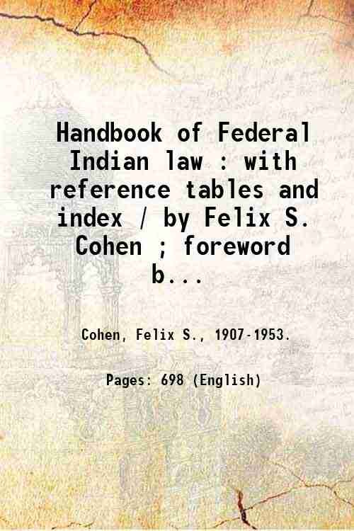 Handbook of Federal Indian law : with reference tables and index / by Felix S. Cohen ; foreword by Harold L. Ickes ; introduction by Nathan R. Margold. 1945