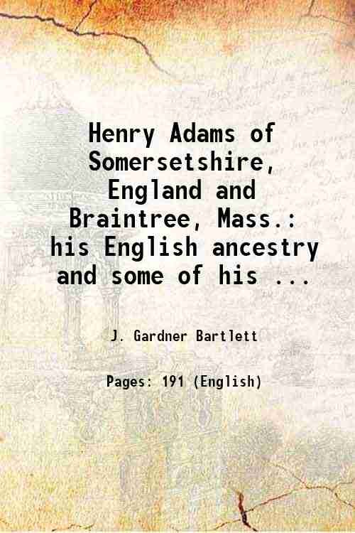 Henry Adams of Somersetshire, England and Braintree, Mass. his English ancestry and some of his descendants 1927