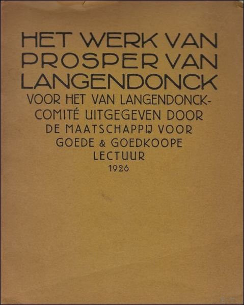 HET WERK VAN PROSPER VAN LANGENDONCK VOOR HET VAN LANGENDONCKCOMITE UITGEGEVEN,