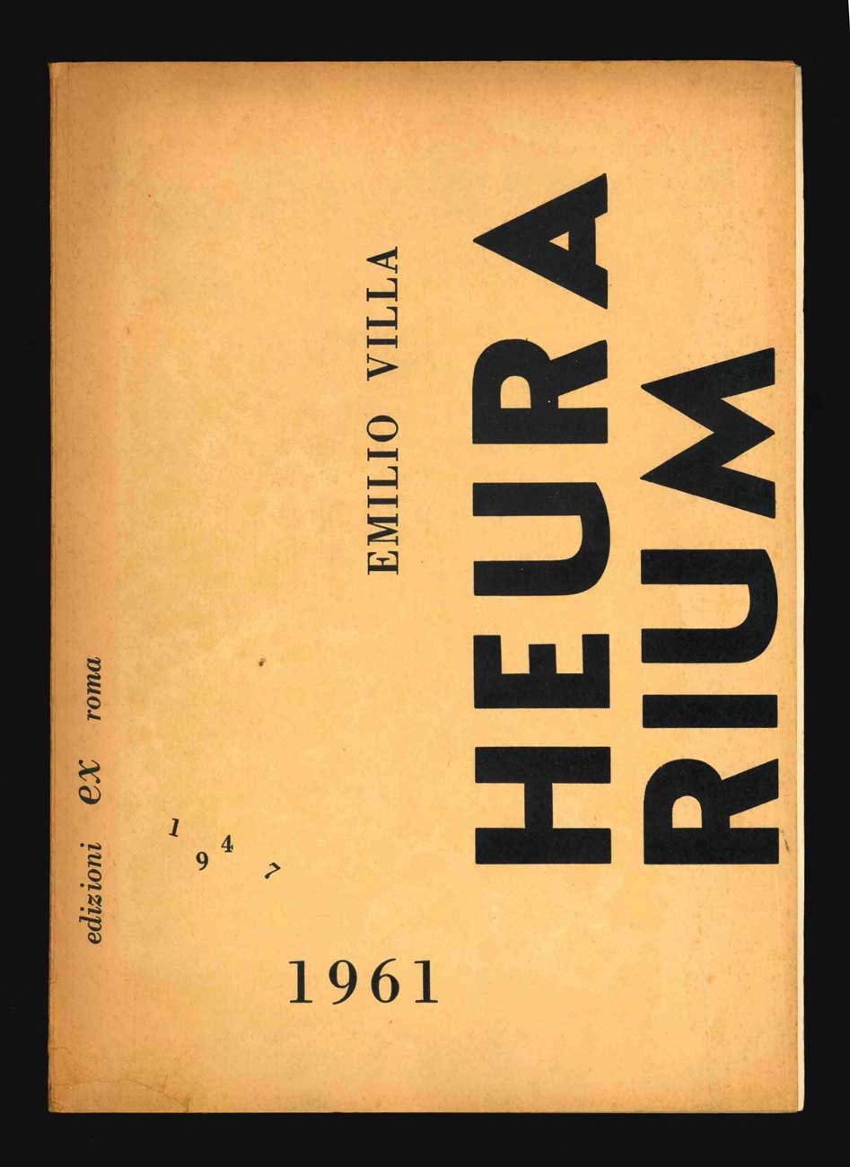 LIBROEdizione originale.Ottimo esemplare.Raccolta di poesie sperimentali, ispirate ai calligrammi e alle parolibere dell’avanguardia storica. Con questo libro, uno dei più rilevanti dell’autore, comincia l’avventura in seno al gruppo dei poeti visivi, conosciuti l’anno precedente, nel 1960 (S.M. Martini e L. Caruso in particolare), sviluppatasi nel corso degli anni ’60 lungo le pagine della rivista autoprodotta «Ex» (uscirono 5 numeri dal ’61 al ’68) — sotto la cui egida è pubblicato questo libro. -- «[.] contiene anche tre dei sei testi apparsi in ‘Un Eden précox’, il rarissimo esordio pubblicato in soli 34 esemplari nel 1957» (Festanti).Festanti, Archivio Emilio Villa, p. 66