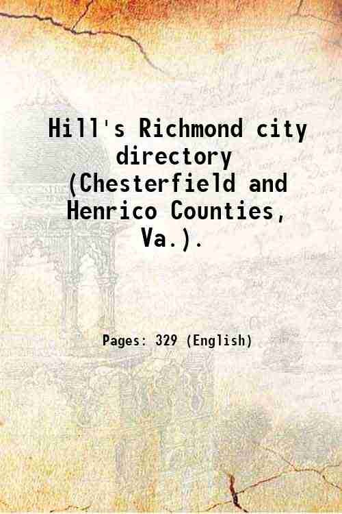 Hill's Richmond city directory (Chesterfield and Henrico Counties, Va.). Volume 1874-75 1875 | Rare and modern books | Anonymous