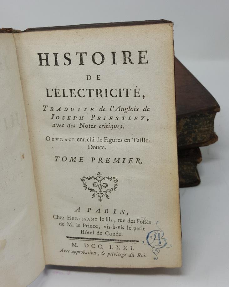 Histoire de l'electricité, traduite de l'anglois, de Joseph Priestley, avec des notes critiques. Ouvrage enrichi de figures en taille douce.