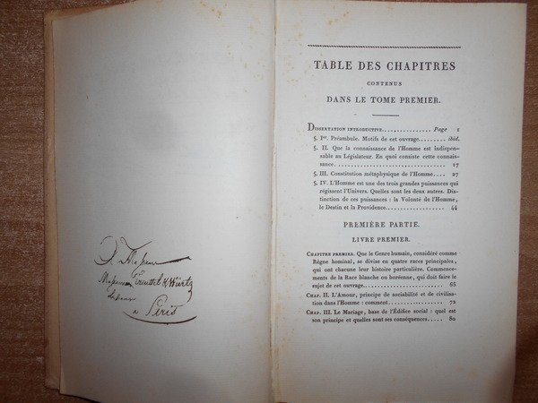 Histoire Philosophique du Genre Huamain ou l' Homme considéré sou ses rapports religieux et politiques dans l' état social à toutes les époques et chez les différentes peuples de la Terre. Sur l' imprimé de 1822 - 1824