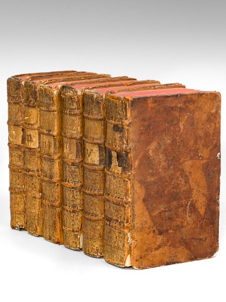 6 vol. in-12 reliure de l'époque pleine basane marron, dos à 5 nerfs orné, Chez Jean-B. Besongne, A Rouen, 1708 à 1734, Tome I : 1733, 1 f., 351 pp. et 16 ff. n. ch. ; Tome II : 1708, 1 f., 371 pp. et 12 ff. n. ch. ; Tome III : 1720, 1 f., 410 pp., 14 ff. n. ch. ; Tome IV : 1725, 1 f., 433 pp. et 21 ff. n. ch. ; Tome V : 1734, 1 f., 450 pp. et 11 ff. n. ch. ; Tome VI : 1727, 8 ff., 564 pp. et 17 ff. n. ch. Exemplaire bien complet des 6 tomes, avec des volumes aux dates diverses, comme souvent selon Frère ("Il est résulté de ces diverses réimpressions et de cette publication par vol. successifs, qu'on trouve rarement des exempl. ayant une date uniforme"). Prêtre et historien, Louis de Masseville (1647-1733) est originaire de l'arrondissement de Valognes (Manche). Etat satisfaisant (reliures frottées avec mq. en coiffes et mors, nomb. traces d'usage,pièces de tomaison postérieures en papier contrecollé, ex-libris ms. ancien "Mr de Montitier Conseiller du Roy Lieutenant particulier au bailliage d'Avranches, ex-libris ms. Ferrey Montitier, ex-libris gravé Jean Seguin d'Avranches). Frère, Bibliographe Normand, II, 288