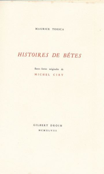 Gilbert Drouin 1948 Paris, Gilbert Drouin 1948. In-8 en feuillets, sous couverture rempliée, double étui. 127 pages illustrées d'eaux-fortes originales de Michel CIRY (14 eaux-fortes originales, dont un frontispice et 13 grands in-texte). Tirage limité numéroté à 215 exemplaires. celui-ci un des 26 exemplaires sur arches numérotés de 15 à 40 (portant le n° 30) contenant une suite des gravures sur rives. Edition originale. Quelques rousseurs pâles sur les tranches, sinon bon état.