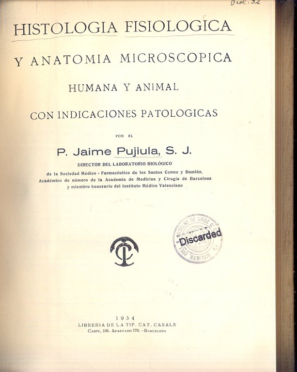 Histologia fisiologica y anatomia microscopica humana y animal con indicaciones patologicas.