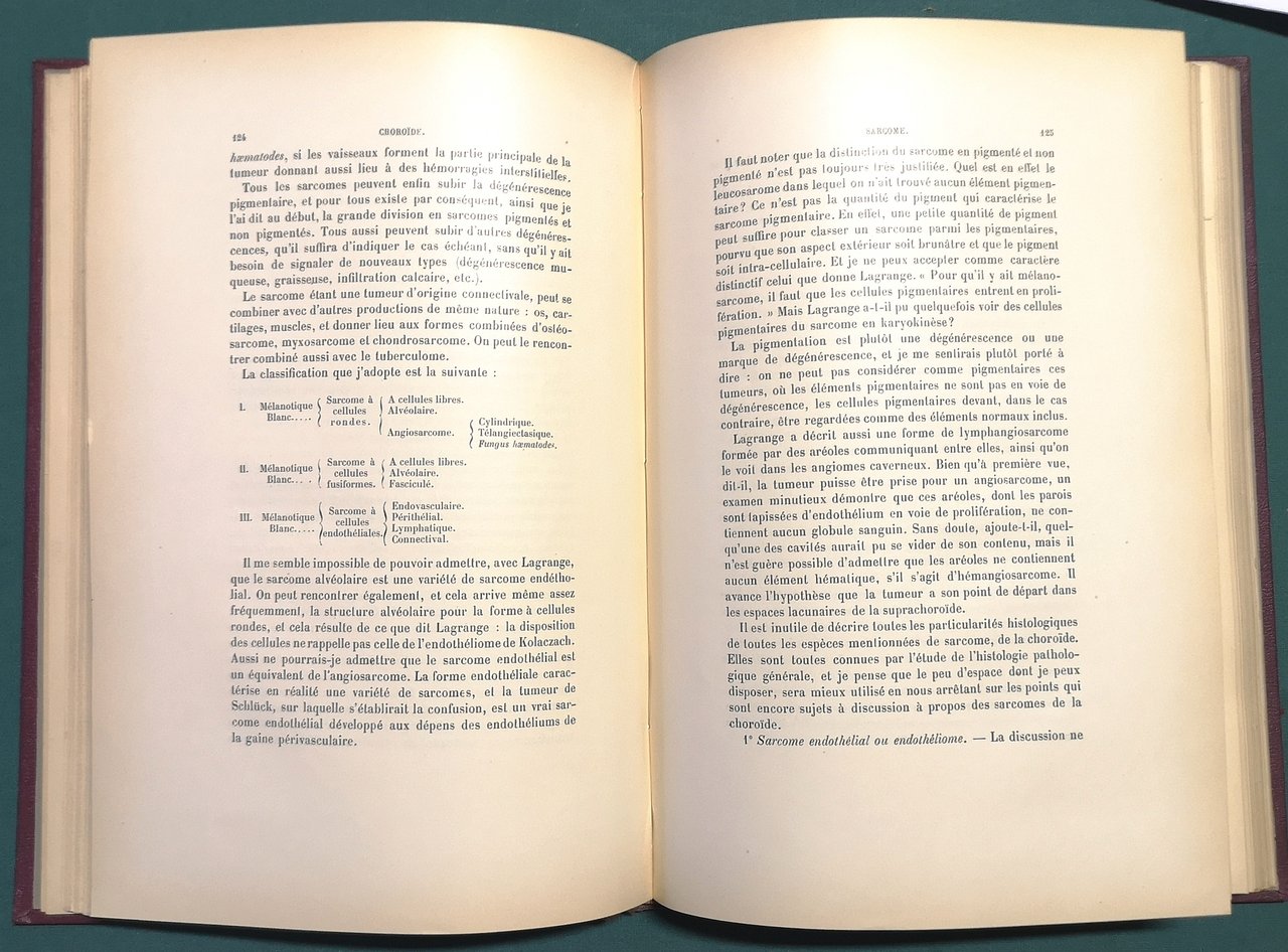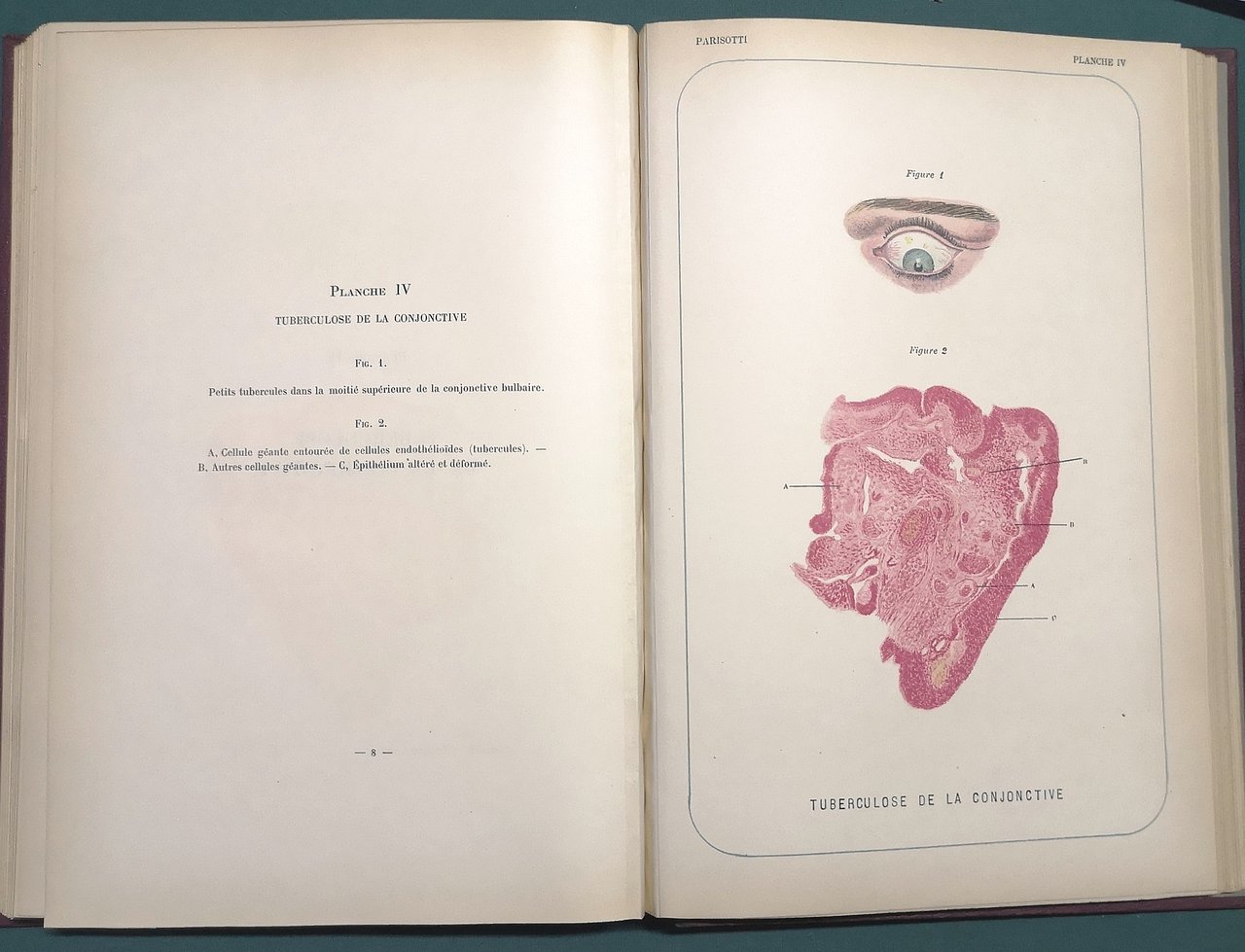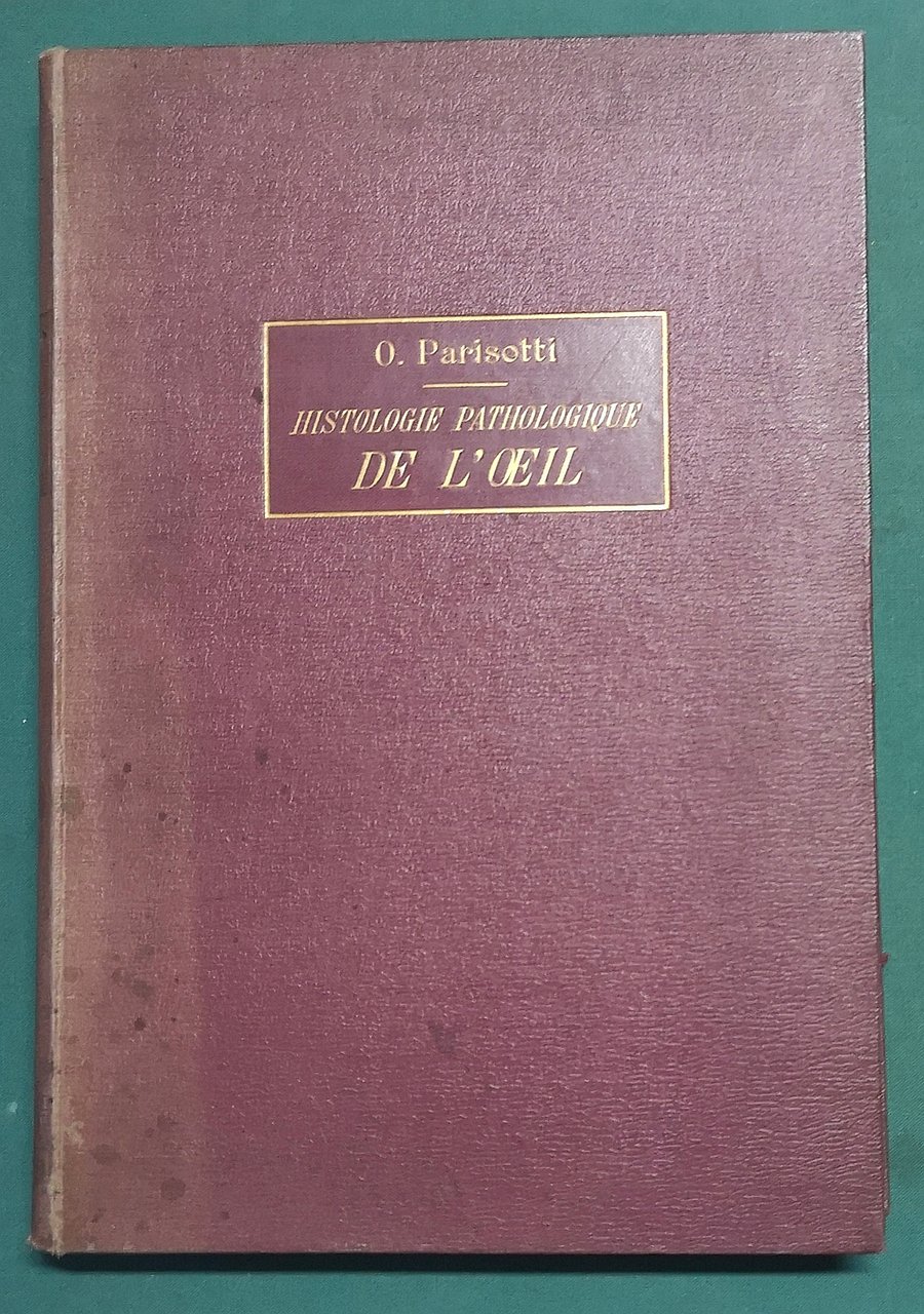 >in-8 gr., pp. VIII, 224, legatura edit. t. tela, tit. oro sul piatto super. e al dorso, taglio super. dor. Le 20 tavole f.t., in cromolitografia, sono tutte accompagnate da un foglio di testo esplicativo e indice in fine. Prima edizione di questo vasto trattato sulle patologie dell'occhio. Ottimo esempl. Non in Source Book of Ophthalmology.