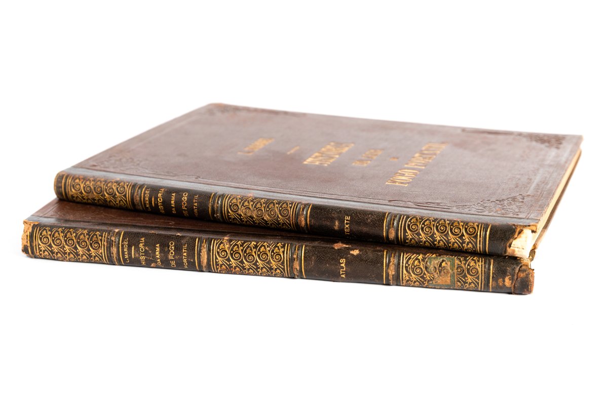 In folio, mm 310x240, due volumi pp. 185, (3), con 4 tavole litografiche; 58 tavole in cromolitografia raffiguranti armi da fuoco. Legature coeva in mezza pelle con piatti in percallina, titoli e ricchi fregi in oro al dorso, ai piatti cornice impressa a secco e titoli in oro. Piccole mancanze alle cuffie e agli angoli, peraltro attraente e genuino esemplare. Edizione originale.. *** TUTTI I NOSTRI LIBRI SONO VISIBILI PREVIO CONTATTO MAIL O TELEFONO NELLA NUOVA SEDE DI MILANO: LIBRERIA COSMOPOLIS, VIA JOMMELLI, 22. ***