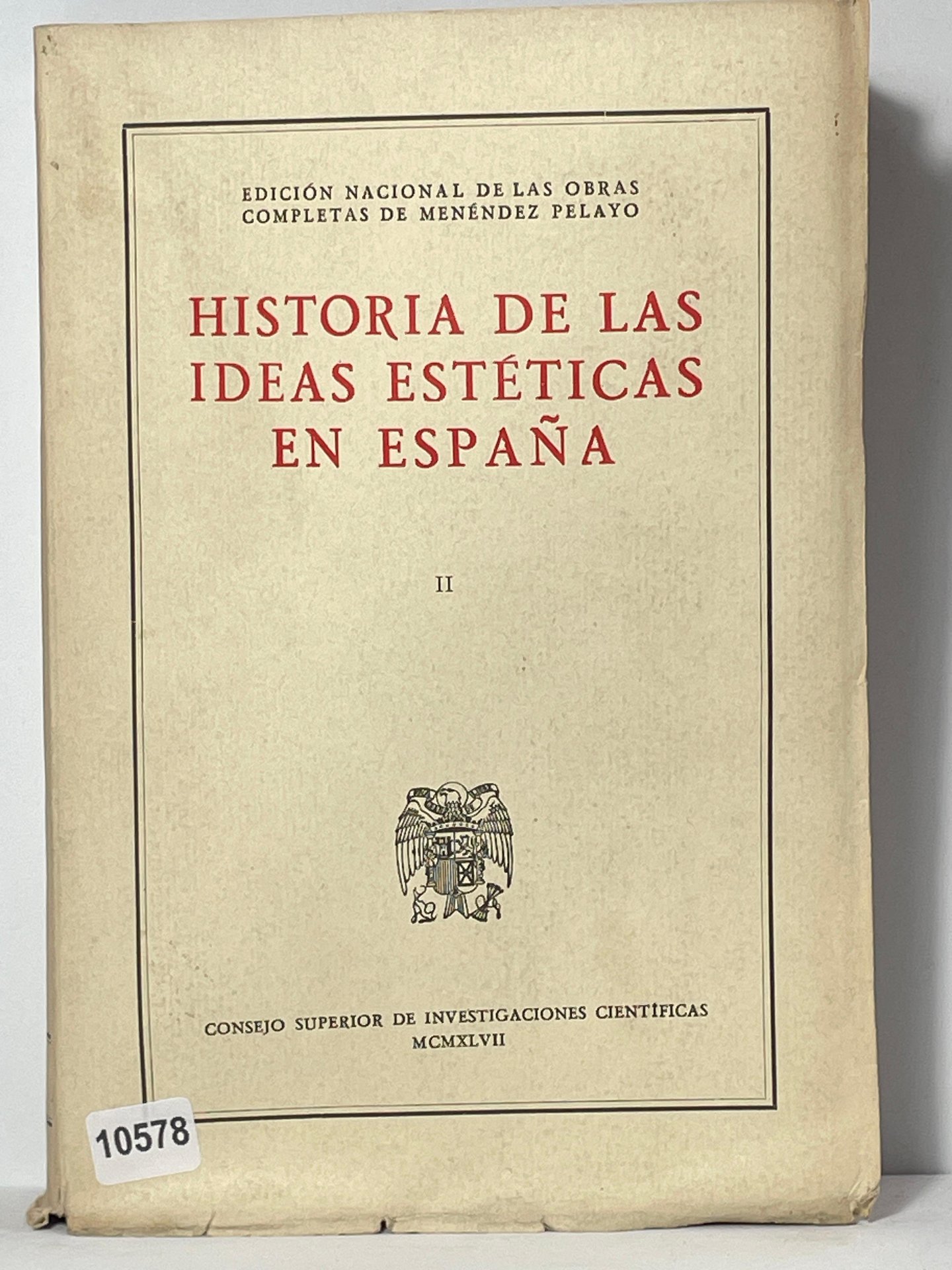 Historia de las ideas estéticas en Espana | Rare and modern books | Consejo Superior De Investigaciones Cientificas Mcmxlvii