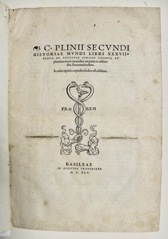 Historiae mundi libri XXXVII denuo ad vetustos codices collate, et<BR>plurimis locis emendati, ut patet et adjunctis adnotationibus.