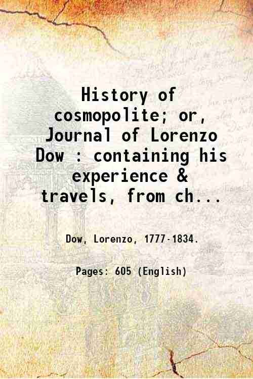 History of cosmopolite; or, Journal of Lorenzo Dow : containing his experience & travels, from childhood to 1814, being upwards of thirty-six years. 1849