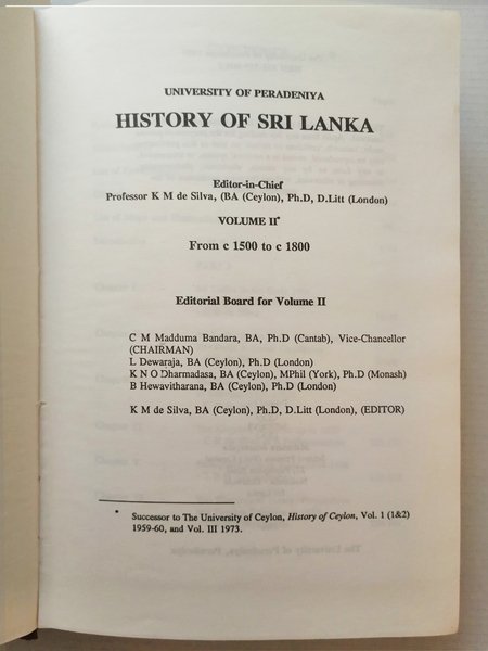 History of Sri Lanka. Volume II c.1500 to c.1800