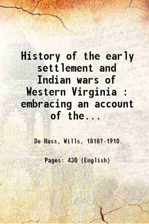 History of the early settlement and Indian wars of Western Virginia : embracing an account of the various expeditions in the West, previous to 1795 ; also, biographical sketches / by Wills De Hass. 1851