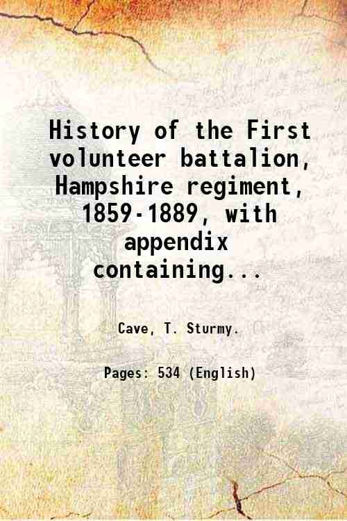 History of the First volunteer battalion, Hampshire regiment, 1859-1889, with appendix containing notes and illus. in reference to the corps from 1890 to 1903. 1905