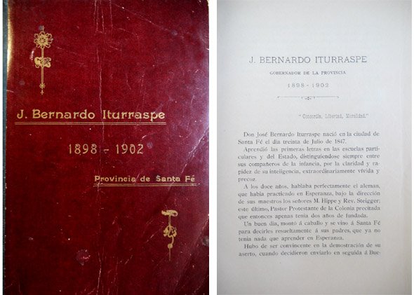 Homenaje de la Provincia de Santa Fe a José Bernardo Iturraspe, Gobernador de la Provincia, 1898-1902. Texto biográfico redactado por Celestino E. Pera.
