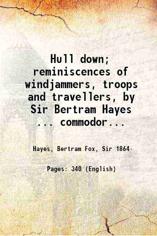 Hull down; reminiscences of windjammers, troops and travellers, by Sir Bertram Hayes . commodore of the White star line, with eight plates. 1925