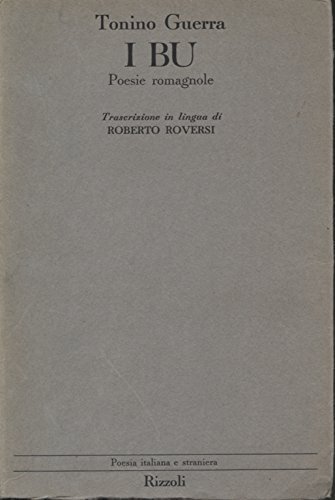 I Bu. Poesie romagnole. Trascrizione in lingua di Roberto Roversi. , Rizzoli 1972 italiano, Prima edizione Rizzoli - Poesia italiana e straniera - marzo 1972 - in COPERTINA FLESSIBILE con alette informative. Copertina con fioriture e piccole macchioline marroni, con segni di usura lungo i bordi e negli spigoli. Piccolo timbro in seconda pagina a forma di R. Pagine abbastanza imbrunite fattore tempo. Condizioni accettabili. Disponibilità immediata e spedizione con corriere tracciata.