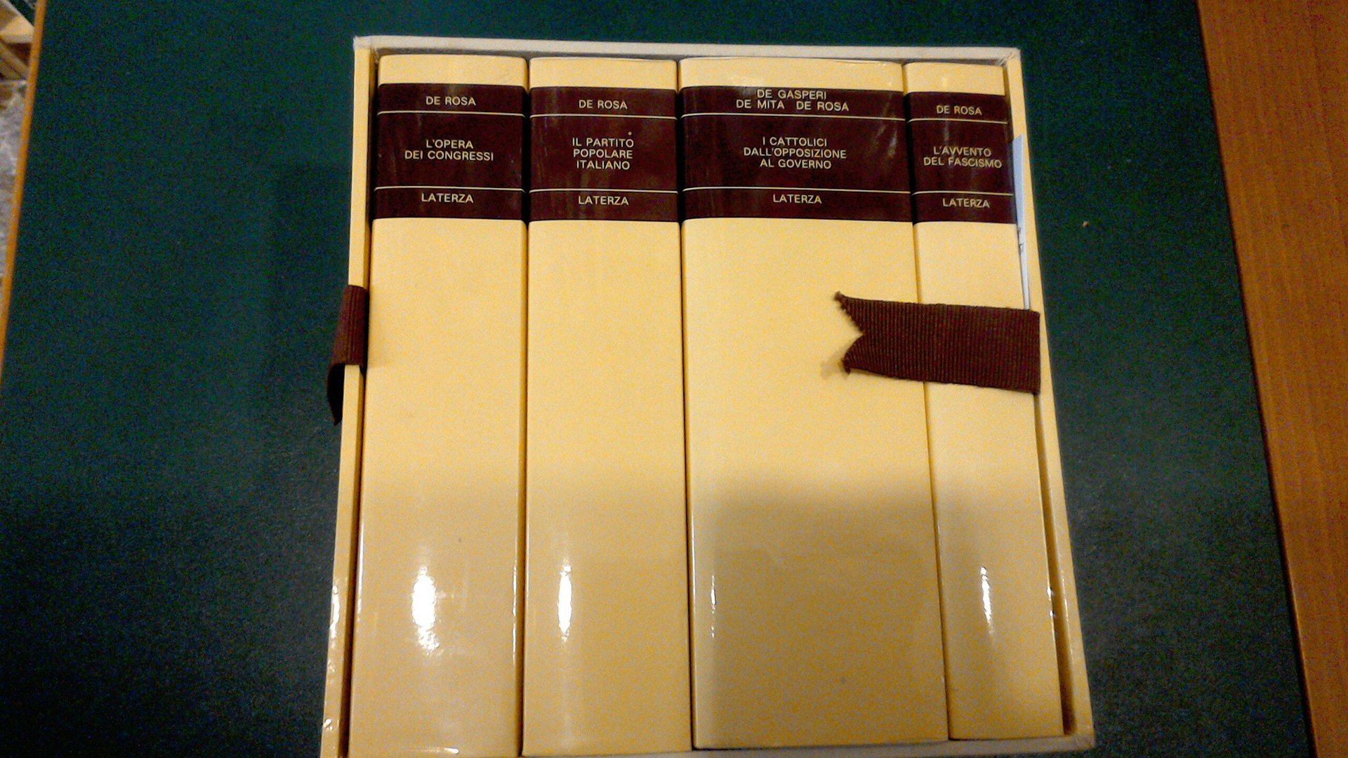 Vol.I: G.De Rosa, L'Opera dei Congressi. Vol.II: G.De Rosa, Il Partito Popolare Italiano. Vol.III: G.De Rosa, L'avvento del fascismo. Vol.IV: A.De Gasperi - C.De Mita - G.De Rosa, I cattolici dall'opposizione al governo.
